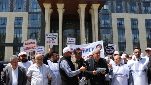 Kütahya'da işten çıkarılan belediye işçileri, Hizmet-İş Sendikası'nın düzenlediği eylemle haklarını savundu.