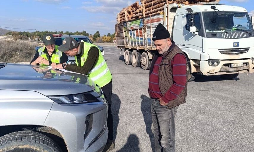 Kütahya'da ormanların korunması ve kaçakçılığın önlenmesi amacıyla, orman emvali yüklü araçlar mobil kontrol noktalarında denetlendi.
