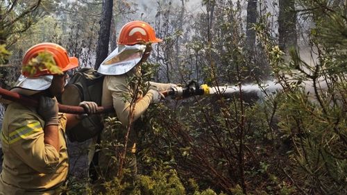 Kütahya'nın Emet ilçesinde çıkan orman yangınına havadan ve karadan müdahale ediliyor. Ekipler, alevlere karşı seferber oldu.