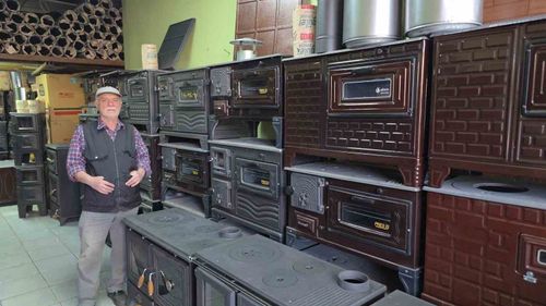 Kütahya Hürriyet Caddesi'nde 71 yaşındaki Mehmet Şınık, babadan kalan sobacılık ve kuzine satışını sürdürüyor; sonbaharda talepler artıyor.