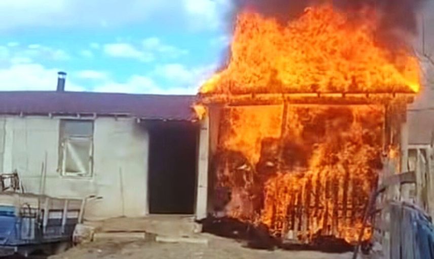 Yangın nedeniyle ahırda maddi hasar meydana geldi.