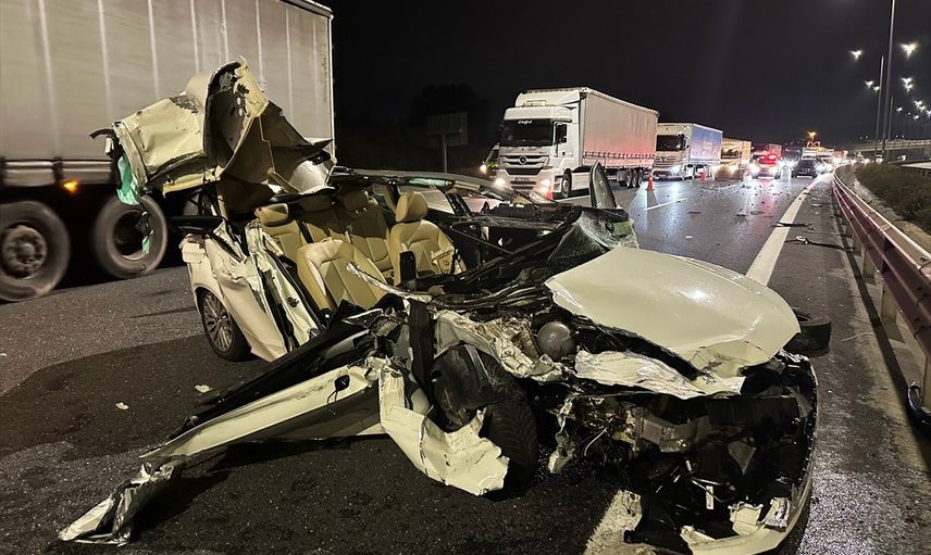 Kuzey Marmara Otoyolu'nun Sultanbeyli kesiminde, otoyolun Edirne istikametinde seyreden 06 FM 2951 plakalı otomobil, aynı yönde ilerleyen 61 AT 015 plakalı kapalı kasa kamyonete arkadan çarptı.