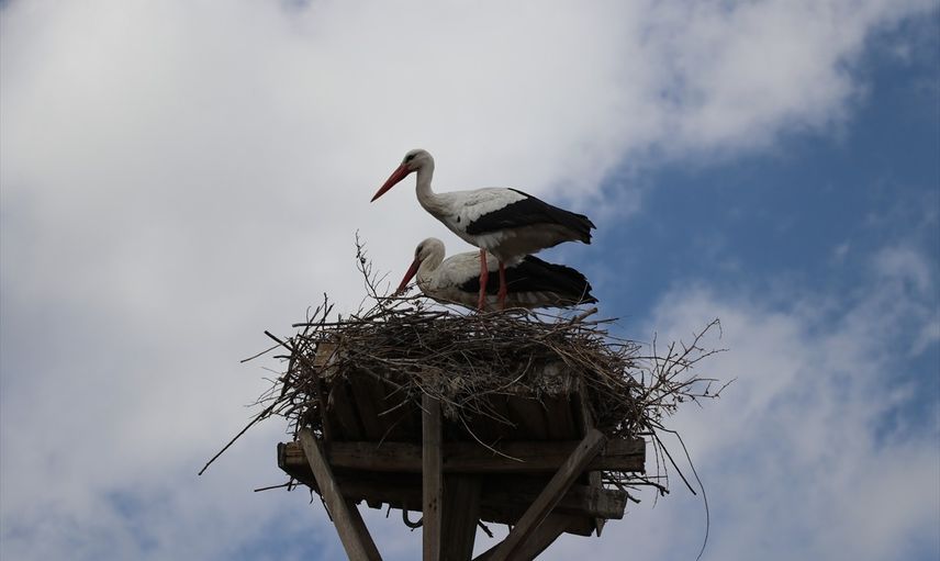 Ağrı'da havaların ısınmaya başlamasıyla kışı sıcak bölgelerde geçiren leylekler, köylerde direkler üzerindeki yuvalarına dönmeye başladı.