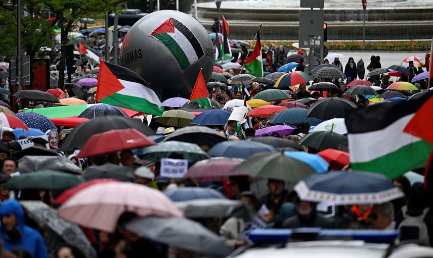 İspanya'nın başkenti Madrid'de, binlerce İspanyol, Gazze'deki soykırıma karşı gerçekleştirilen yürüyüşte bir araya geldi. Bu gösteri, İsrail'le silah ticaretinin durdurulması çağrısında bulunarak katılımcıları bir araya getirdi.