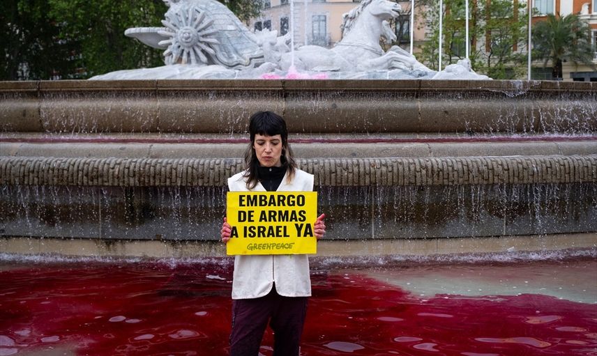 Çevre örgütü Greenpeace'e bağlı bir grup aktivist, İsrail'e silah satışını protesto etmek için İspanya'nın başkenti Madrid'in merkezinde bulunan Neptün Çeşmesi'ne kırmızı boya attı. Eylemde Neptün Çeşmesi'ne kırmızı boya atan Greenpeace, "Neptün Çeşmesi'ni kanla kırmızıya boyadık: Filistin halkının soykırımına son verin" yazılı mesajı sosyal medya hesabından paylaştı.