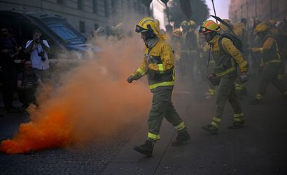 İspanya'nın başkenti Madrid'de süresiz grevde olan orman itfaiyecileri, taleplerini duyurmak için Maliye Bakanlığı binası önünde toplandı. Eylem, çalışanların maaş zammı ve çalışma şartlarının iyileştirilmesi taleplerini gündeme taşıdı.