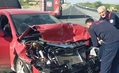 Malatya'nın Yeşilyurt ilçesinde meydana gelen kazada, Hasan K. idaresindeki 31 ALF 303 plakalı otomobil, Görgü Mahallesi'nde Nihat S. yönetimindeki 31 AJD 286 plakalı çekiciye bağlı römorka çarptı.