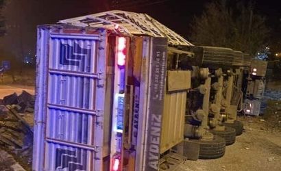Kazada yaralanan olmadı, ancak devrilen tır nedeniyle yol bir süre ulaşıma kapandı.