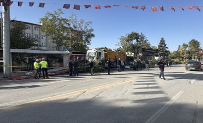 Malatya'nın Yeşilyurt ilçesinde freni arızalanan kamyon, yol kenarındaki 7 konteyner iş yerine çarptı.