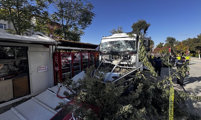 Malatya'nın Yeşilyurt ilçesinde freni arızalanan kamyon, yol kenarındaki 7 konteyner iş yerine çarptı.