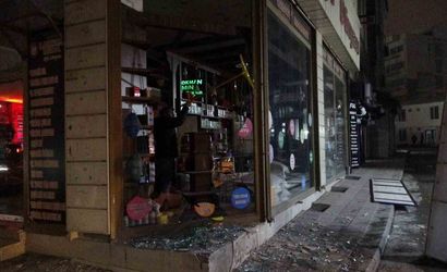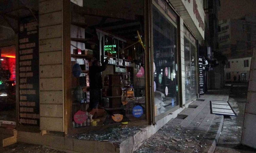 Malatya'da hafriyat kamyonu lastik patlaması iş yeri camlarını kırdı