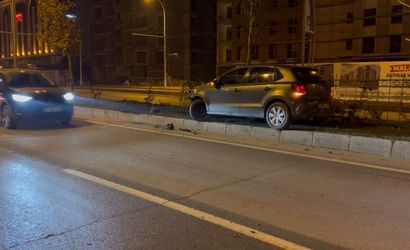 Sürücü, köpeğe çarpmamak için manevra yapınca araç refüje çıktı. Bu sırada aracın çarptığı köpek telef oldu ve sürücü yaralandı.