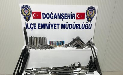 Doğanşehir İlçe Emniyet Müdürlüğü ekiplerinin gerçekleştirdiği aramalarda, şüpheliye ait ikamet ve eklentilerinde 11 adet tabanca üst kapağı, 22 adet tabanca şarjörü, 7 adet tabanca iskeleti, 32 adet fişek ile çok sayıda tabanca ve av tüfeği parçası ile tamirat-bakım malzemeleri ele geçirildi.
