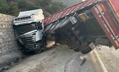 Edinilen bilgilere göre, Adıyaman istikametine seyir halinde olan İ.A. idaresindeki 63 AEN 444 plakalı tır, sürücüsünün kontrolünden çıkarak savrulup istinat duvarına çarptı.