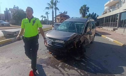 Manavgat'ta hafif ticari araç palmiye ağacına çarptı