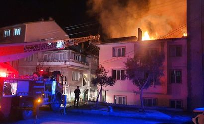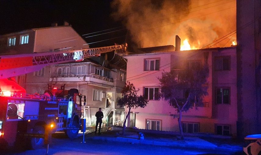 Manisa'nın Demirci ilçesinde 3 katlı binanın çatısında çıkan yangın hasara yol açtı.