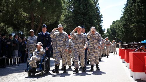 Manisa'da 56 engelli genç, Engelliler Haftası dolayısıyla Akhisar Hava Meydan Komutanlığı'nda bir gün askerlik yaptı.