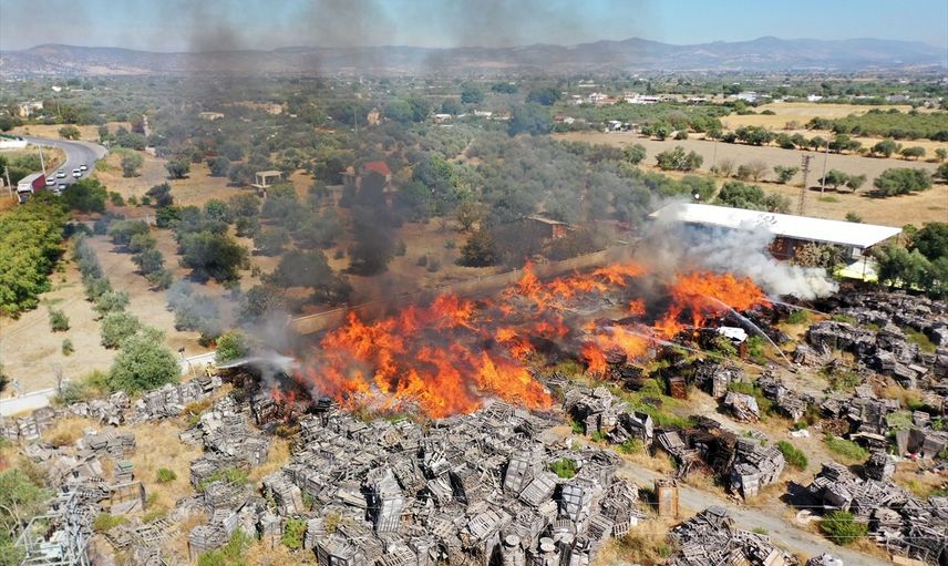 Manisa'nın Yunusemre ilçesine bağlı Muradiye Mahallesi'ndeki bir palet fabrikasında, henüz belirlenemeyen nedenle yangın çıktı.