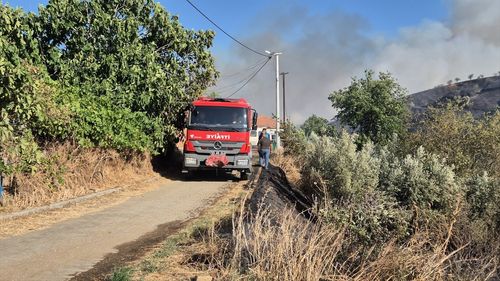 Manisa'nın Turgutlu ilçesindeki yangın, yoğun müdahale ile kontrol altına alındı. Çiftlikteki 500 koyun güvenli bölgeye taşındı.