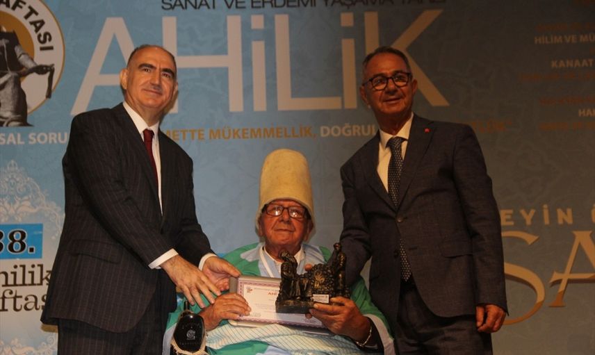 Manisa'da 38. Ahilik Haftası etkinliklerinde yılın ahisi, 34 yıldır bakkallık yapan 94 yaşındaki Abdül Balolsun oldu.