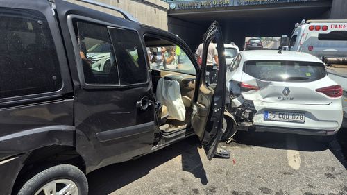 Manisa'nın Turgutlu ilçesinde meydana gelen zincirleme trafik kazasında 7 kişi yaralandı, yaralılardan 2'si çocuk.
