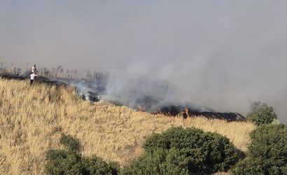 Manisa'nın Ahmetli ilçesinde, ormanlık alanda çıkan bir yangın, hem havadan hem de karadan müdahale edilerek kontrol altına alınmaya çalışılıyor.