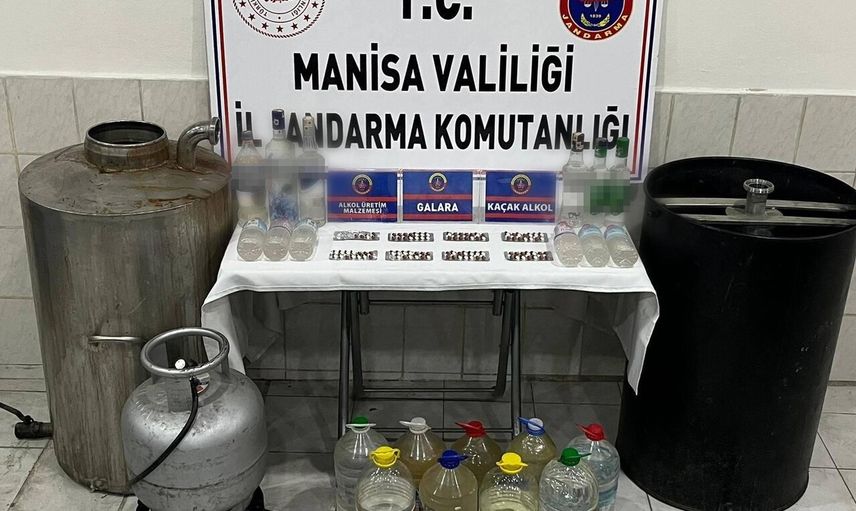 Manisa Salihli'de jandarma operasyonunda sahte içki ve uyuşturucu ele geçirildi