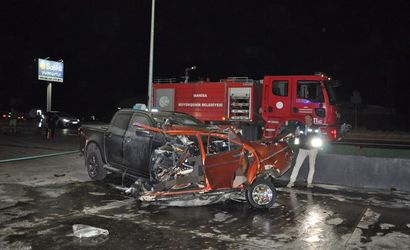 Sürücüsü henüz tespit edilmeyen 35 BLC 88 plakalı otomobil, karşı şeride geçerek Mert Gülderen (41) idaresindeki 45 AVV 432 plakalı kamyonetle çarpıştı.