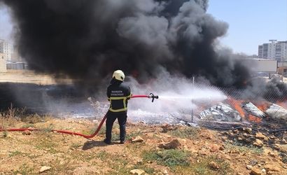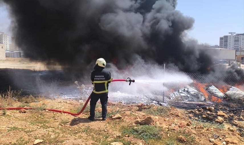 Mardin'in merkez Artuklu ilçesinde, plastik boruların depolandığı açık alanda çıkan yangın söndürüldü.