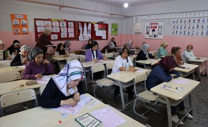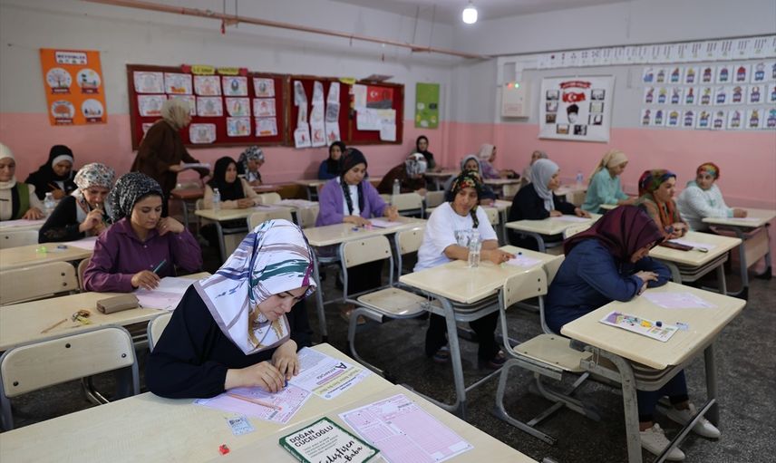 Mardin'in Kızıltepe ilçesinde kitap okuma yarışması kapsamında 12 okulda düzenlenen sınava anneler katıldı.
