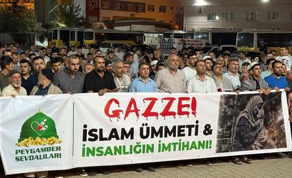 Mardin'de, İsrail'in Gazze'ye saldırılarını protesto için yürüyüş düzenlendi. Peygamber Sevdalıları Vakfı öncülüğünde Kızıltepe ilçesindeki Cumhuriyet Meydanı'nda bir araya gelen katılımcılar Filistin bayraklarıyla, İsrail aleyhine sloganlar eşliğinde ilçe otogarına kadar yürüdü.