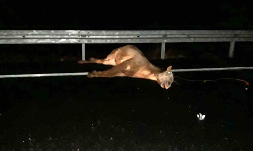 OTOMOBİL, SEYİR HALİNDEYKEN YOLDAKİ ATA ÇARPTI