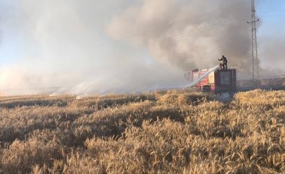 Mardin'in Kızıltepe ve Nusaybin ilçelerinde buğday ekili alanlarda çıkan yangınlar, itfaiye ekiplerince söndürüldü.