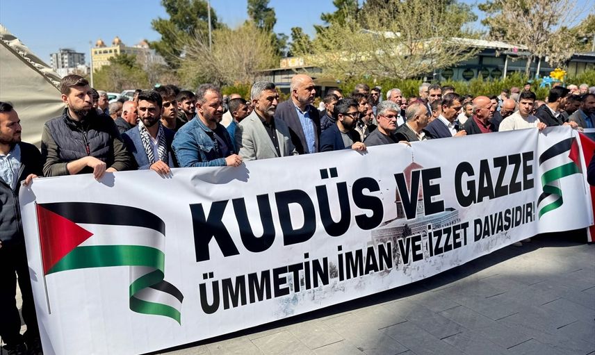 Etkinlikte katılımcılar adına konuşan avukat Yahya Turan, Ramazan ayının son cuma gününün "Dünya Kudüs Günü" olarak kabul edildiğini belirterek, Kudüs'ün İsrail işgalinden kurtulması ve özgürlük ile barışa ulaşması için dilekte bulundu. Turan, Filistin'de yaşanan zulme karşı İsrail ve destekçilerinin ürünlerinin boykot edilmesi gerektiğini vurgulayarak, "Elbet bir gün Kudüs ve Filistin işgalden kurtulacak, işgalci ve soykırımcı siyonistler mağlup olacaktır." dedi. Konuşmanın ardından hayatını kaybeden Filistinliler için dua edildi.