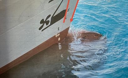 Görüntülerde, gemi kaptanı C.T. ile beraberindeki bir kişinin, geminin demirlediği Kocaeli'deki limanda geminin ön kısmına gelerek çarpma izi olduğu öne sürülen bölümü inceledikleri görülüyor.