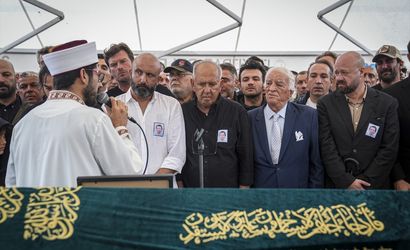 Balıkesir'in Marmara Adası açıklarında 4 Ağustos'ta teknesi parçalanmış bulunan ve denizde cansız bedenine ulaşılan yat üreticisi Halit Yukay, son yolculuğuna uğurlandı.