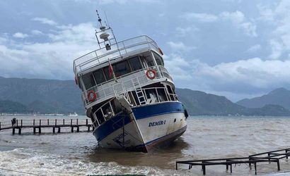 Marmaris'te fırtına: İskeleye çarpan tekne karaya oturdu