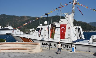 Muğla'nın Marmaris ilçesinde, Sahil Güvenlik Komutanlığının kuruluşunun 43. yıl dönümü dolayısıyla Sahil Güvenlik Güney Ege Grup Komutanlığı botu TCSG-310 ziyaret edildi.