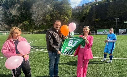 Kozlu Şehir Stadı'nda oynanan Süper Amatör Lig müsabakası öncesinde, meme kanserini yenen 38 yaşındaki Nilda Kadam için anlamlı bir etkinlik düzenlendi.