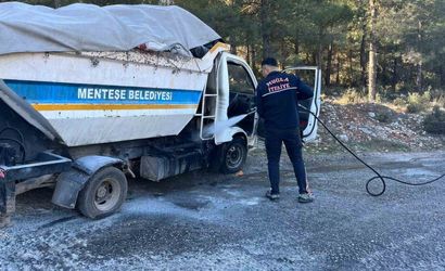 İhbar üzerine bölgeye Muğla Büyükşehir Belediyesi İtfaiye ekipleri sevk edildi. Olay yerine ulaşan itfaiye ekipleri kamyonette soğutma çalışması yaptı.