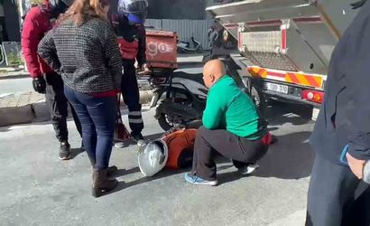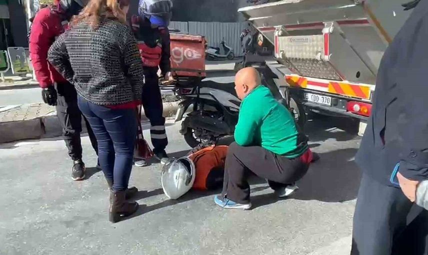 ÇÖP KAMYONUNA ÇARPAN MOTOKURYE YARALANDI