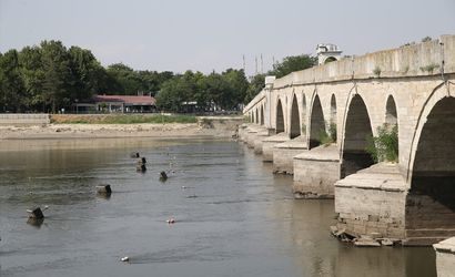 Edirne'de, **aşırı sıcakların** yol açtığı buharlaşma nedeniyle Meriç Nehri'ndeki su seviyesi azalmış ve asırlar öncesinden kalma ahşap köprünün ayakları görünür hale gelmiştir.