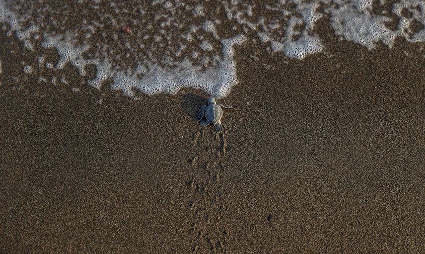 Mezitli ilçesindeki Davultepe 100. Yıl Tabiat Parkı kumsalında, mayıs ayından itibaren yuvalayan anaç kaplumbağaların yumurtalarından çıkan yeşil deniz kaplumbağası yavruları denize ulaşmaya devam ediyor.