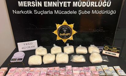 Mersin'de gerçekleştirilen bir operasyonda 9 kilo 442 gram sentetik uyuşturucu ele geçirildi.