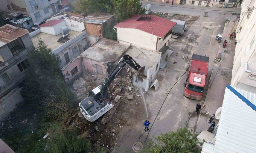 Sahiplerince terk edilen ve zamanla harabeye dönüşen yapı için önce Akdeniz Belediye Encümeni tarafından yıkım kararı alındı. Binada yaşayan vatandaşa evi boşaltması için süre verildi ve tahliye tamamlandıktan sonra Fen İşleri Müdürlüğü ekipleri yıkım hazırlıklarına başladı.