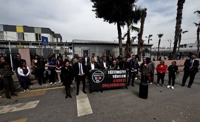 Mersin'in Akdeniz ilçesinde, bazı eğitim sendikalarının üyeleri, Celile Öner Anaokulu müdür yardımcısı Merve Miraç Kumtepe'ye yönelik saldırıyı protesto etti.