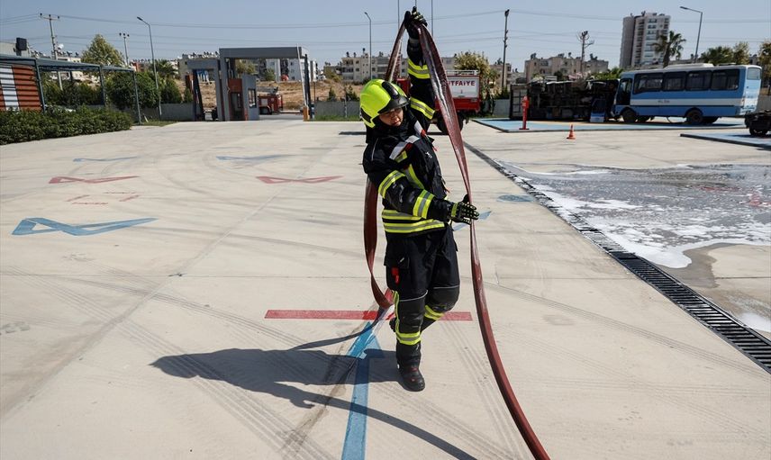 Mersin'de görev yapan kadın itfaiyeciler, olası afetlere hızlı ve etkin şekilde müdahalede bulunmak için zorlu parkurlarda hazırlık yapıyor.
