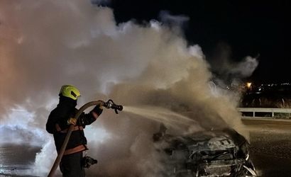 Kamyonun sürücüsü ve plakası henüz öğrenilemeyen aracın, arkadan çarpması sonucunda meydana gelen kazada, otomobil alev aldı. Kısa sürede büyüyen yangının ihbar edilmesi üzerine olay yerine polis ve itfaiye ekipleri sevk edildi.