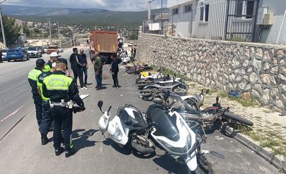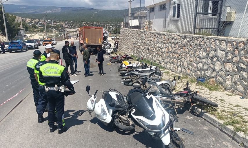 Mersin'in Silifke ilçesinde sürücüsünün kontrolünden çıkan kamyon, organize sanayi bölgesi girişinde park halindeki 13 motosiklet ve 2 otomobile çarptı.