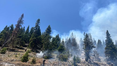 Mersin'in Erdemli ilçesinde çıkan orman yangınına havadan ve karadan müdahale ediliyor.